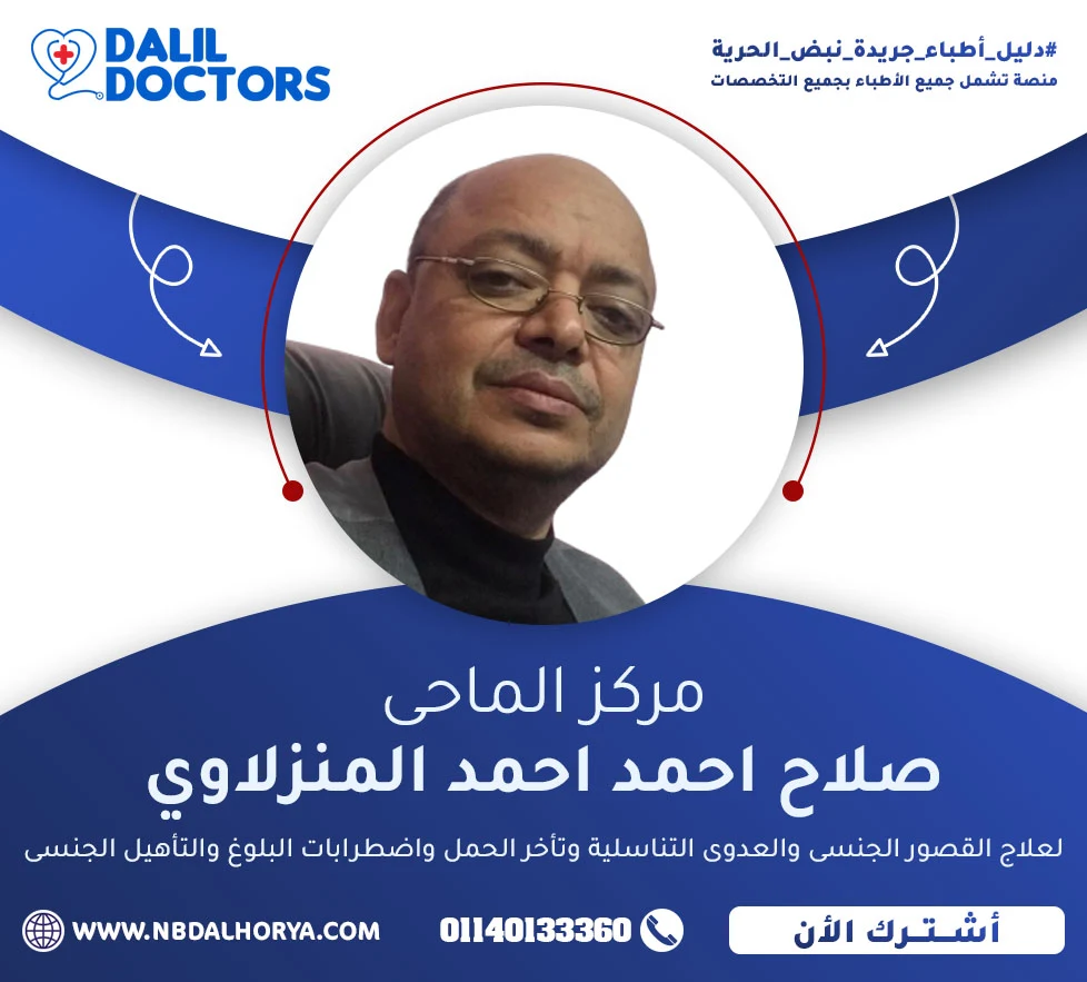 يُعد مركز الماحي بقيادة الدكتور صلاح أحمد أحمد المنزلاوي من المراكز الطبية المتخصصة في تقديم الرعاية المتكاملة في مجالات علاج القصور الجنسي، العدوى التناسلية، تأخر الحمل، اضطرابات البلوغ، والتأهيل الجنسي. يتمتع الدكتور صلاح بخبرة تمتد لأكثر من 15 عامًا في مجال أمراض الذكورة، ما يجعله من الكفاءات المتميزة في هذا التخصص.