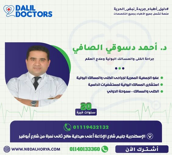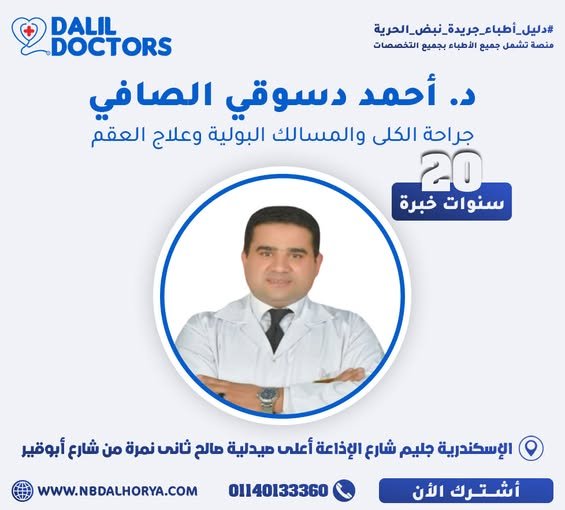 يتمتع الدكتور أحمد دسوقي الصافي بخبرة تمتد لأكثر من 20 عامًا في مجال جراحة الكلى والمسالك البولية وعلاج العقم، ويُعد من الأسماء البارزة في هذا التخصص داخل مصر. يشغل حالياً منصب استشاري المسالك البولية بمستشفيات أندلسية، وهو عضو الجمعية المصرية لجراحي الكلى والمسالك البولية.