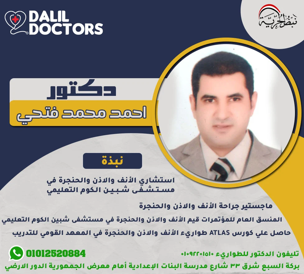 يتمتع الدكتور أحمد محمد فتحي البرقي بخبرة تتجاوز الـ 25 عامًا في مجال الأنف والأذن والحنجرة، ويُعد أحد الأسماء البارزة في التخصص على مستوى محافظة المنوفية. يشغل منصب استشاري الأنف والأذن والحنجرة في مستشفى شبين الكوم التعليمي، حيث يقدم خدمات طبية دقيقة وشاملة في مجاله.