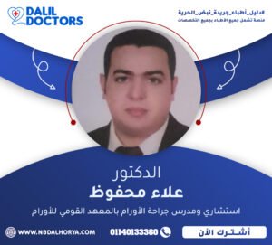 - استشاري جراحة الأورام بمستشفى القباري بالإسكندرية.