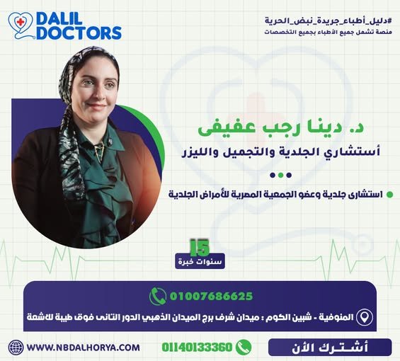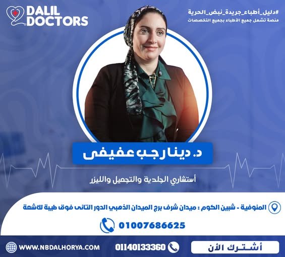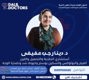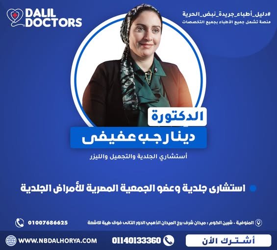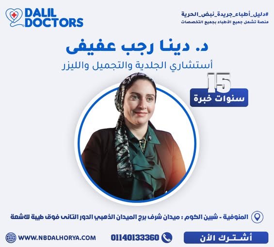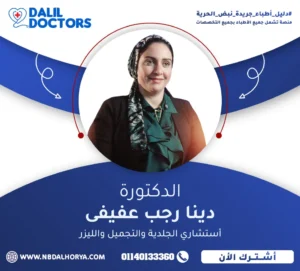 د. دينا رجب عفيفي هي استشارية متميزة في مجال الجلدية والتجميل والليزر، تتمتع بخبرة تمتد لأكثر من 15 عامًا في تشخيص وعلاج مختلف الأمراض الجلدية وتقديم أحدث تقنيات التجميل والعناية بالبشرة.