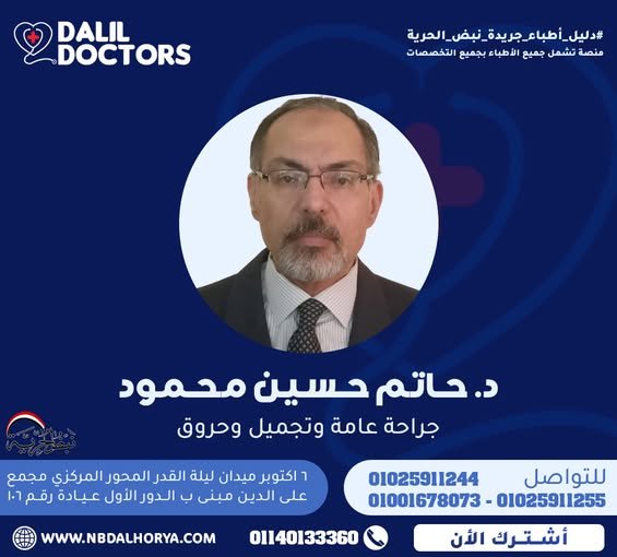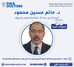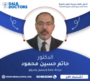 يُعد الدكتور حاتم حسين محمود من الأسماء المتميزة في تخصص الجراحة العامة والتجميل وعلاج الحروق، حيث يمتلك خبرة عملية وعلمية تمتد لأكثر من ثلاثة عقود، قدّم خلالها خدمات طبية عالية الجودة لآلاف المرضى.
