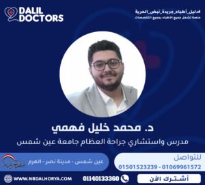 مدرس واستشاري جراحة العظام بجامعة عين شمس، يتمتع بخبرة تمتد لأكثر من 12 عاماً في مجال جراحات وإصابات العظام. يقدّم خدماته الطبية المتخصصة بدقة وخبرة عالية، مع الحرص على متابعة أحدث أساليب العلاج والتشخيص. (سعر الكشف لم يحدد بعد).