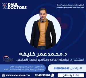 يُعد الدكتور محمد عمر خليفة من الأسماء البارزة في مجال الباطنة العامة ومناظير الجهاز الهضمي، بخبرة تمتد لأكثر من 20 عامًا في تشخيص وعلاج أمراض الجهاز الهضمي والكبد، بالإضافة إلى إجراء مناظير القنوات المرارية بدقة واحترافية عالية.