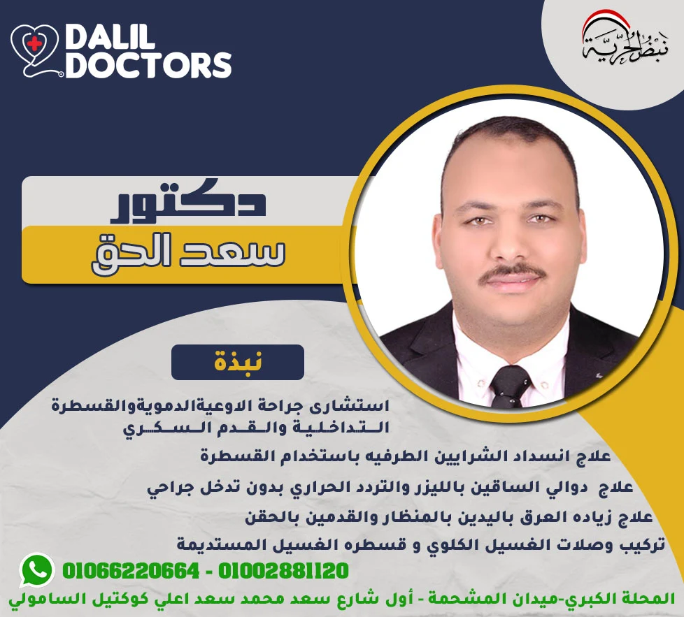 الدكتور سعد الحق استشاری جراحة الاوعية الدموية والقسطرة التداخلية والقدم السكري