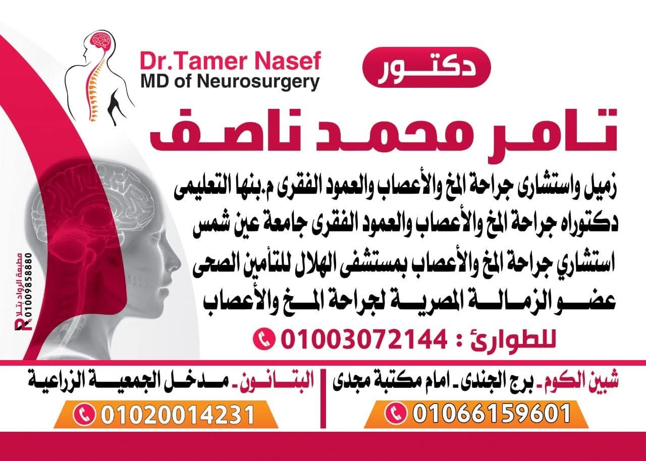 يُعد الدكتور تامر محمد ناصف من الأسماء البارزة في مجال جراحة المخ والأعصاب والعمود الفقري، بخبرة تمتد لأكثر من 20 عاماً في هذا التخصص الدقيق. يشتهر بكفاءته العالية في تشخيص وعلاج الحالات المعقدة، ويقدم رعاية طبية متقدمة مبنية على أحدث الأساليب والتقنيات الجراحية.