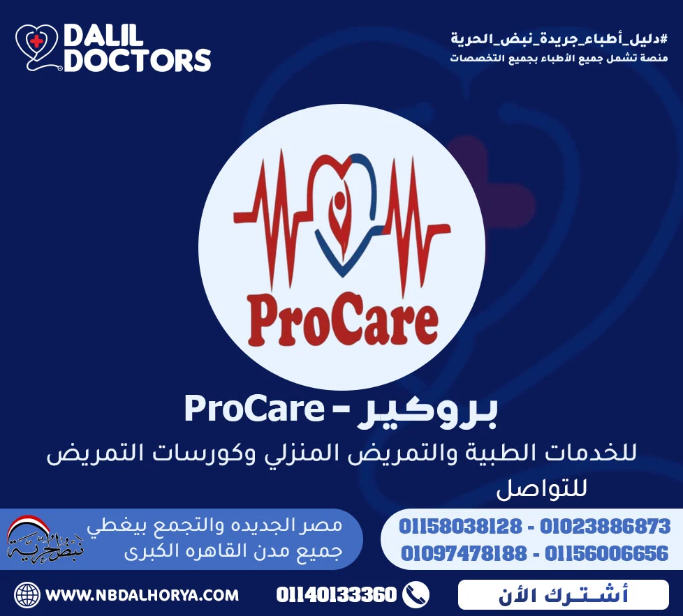بروكير – ProCare هي شركة رائدة في مجال الخدمات الطبية والتمريض المنزلي، بخبرة تمتد لأكثر من 12 عامًا من التميز والالتزام بتقديم أعلى مستويات الرعاية الصحية داخل المنازل والمؤسسات.